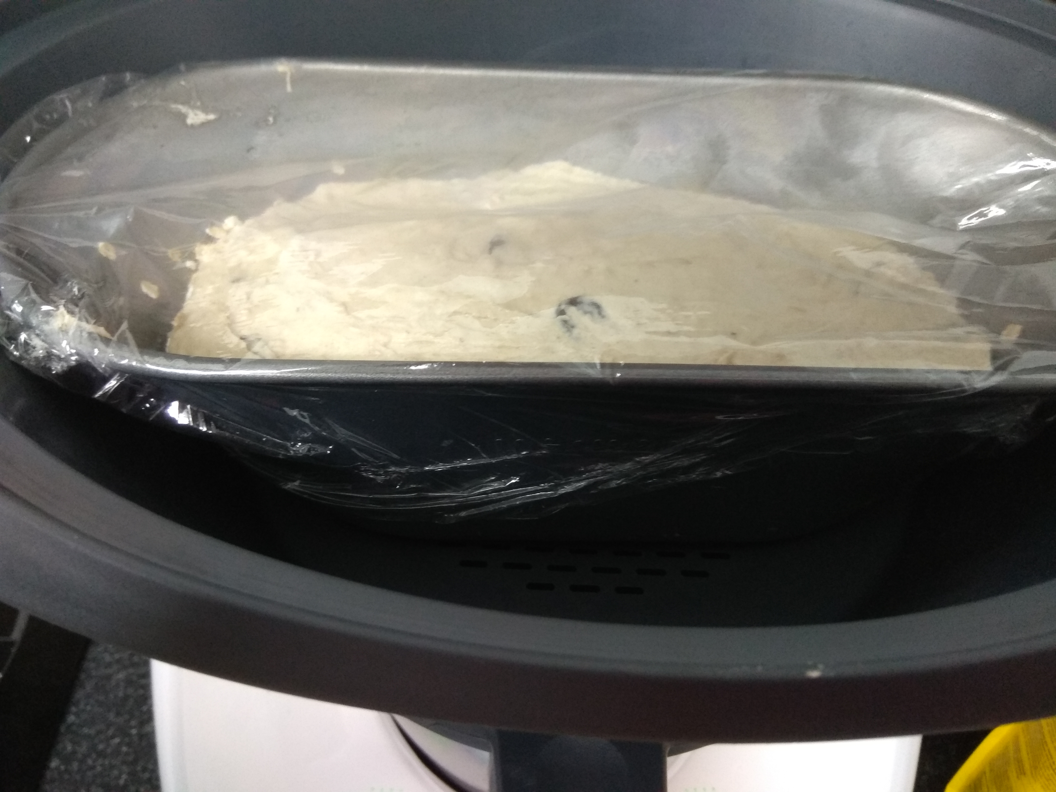 - Añadir el sarraceno,y los demás ingredientes 30seg.V3 .Vierta la masa en el molde,cubra con film resistente al calor.Deje reposar en el Varoma 15min.