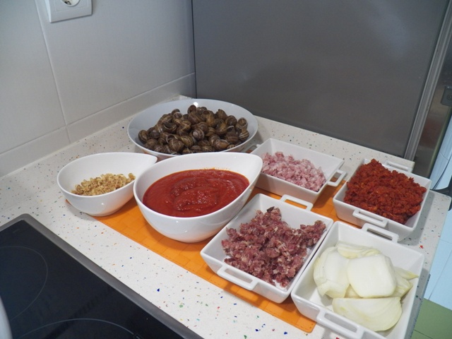 1.- 600 grs caracoles cocidos (aclarados y escurridos)