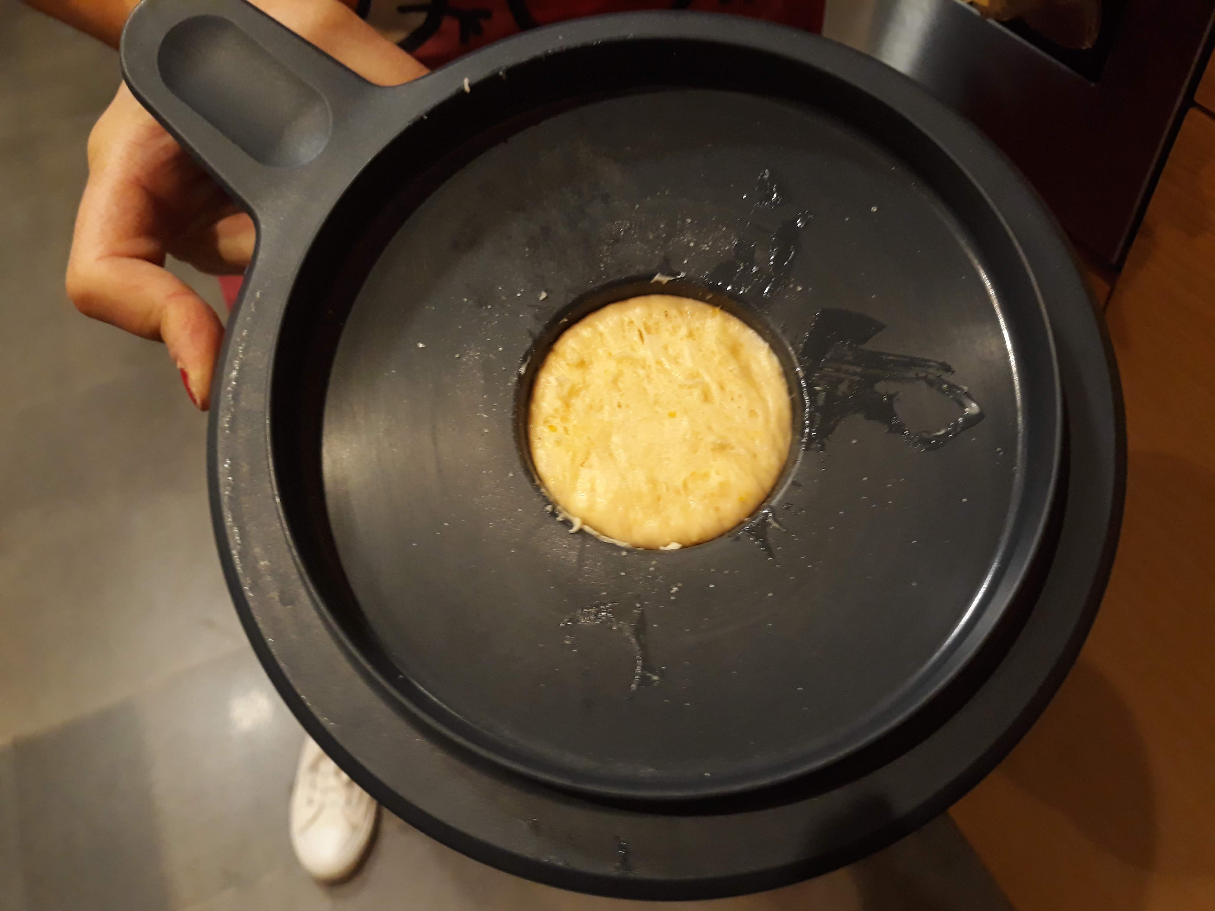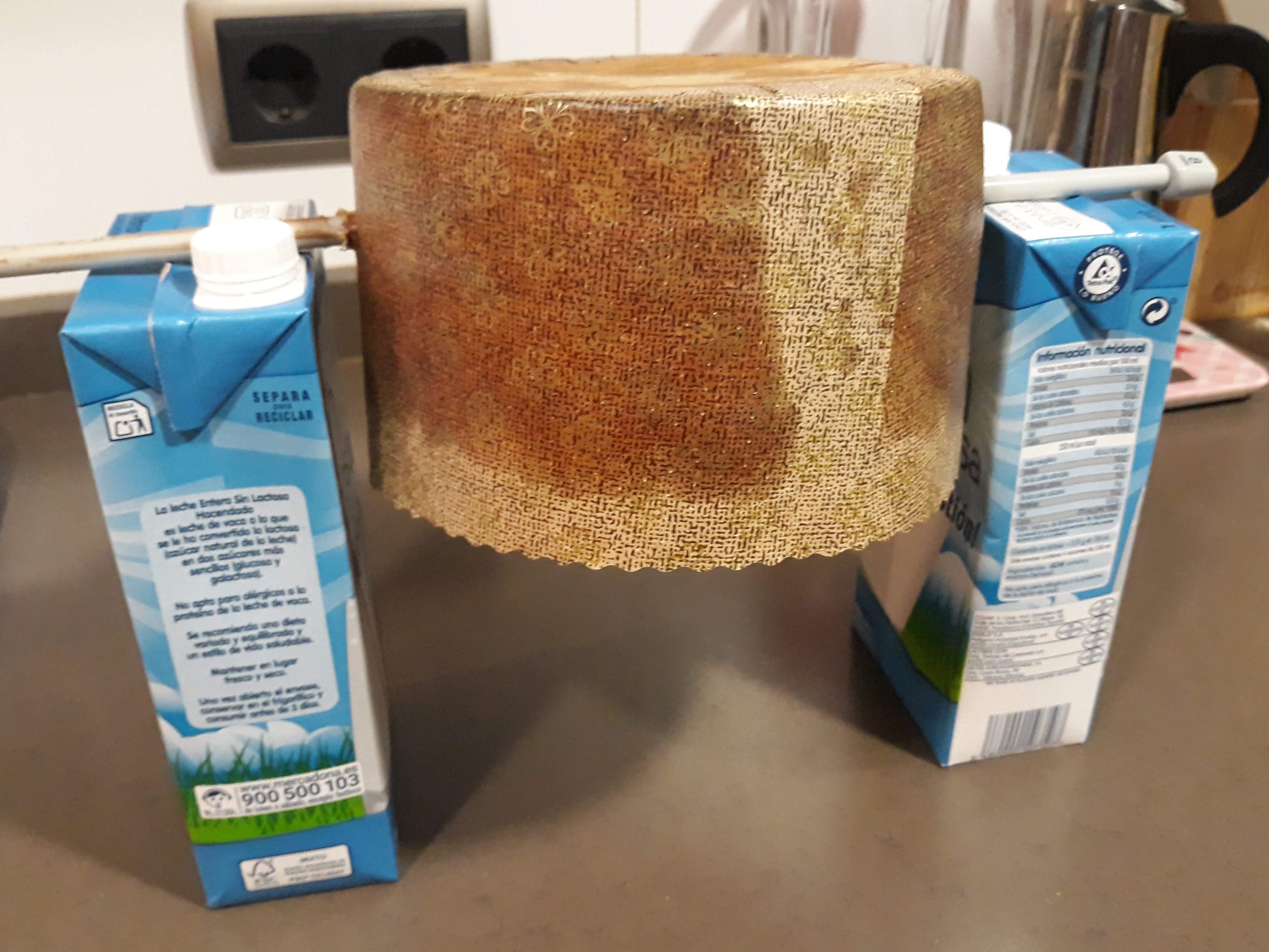 Cuando lo saquéis del horno, para que enfríe de una forma correcta, debéis atravesarlo con una aguja de tejer lana y colgarlo boca abajo.