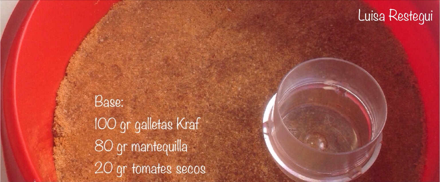 2.- Añada el tomate seco y 80 gr. de mantequilla y triture 20 seg/vel. 8. Vierta en el molde preparado, cubra con papel de hornear y, con una cuchara reparta y presione para que quede compacta. Reserve en el frigorífico.