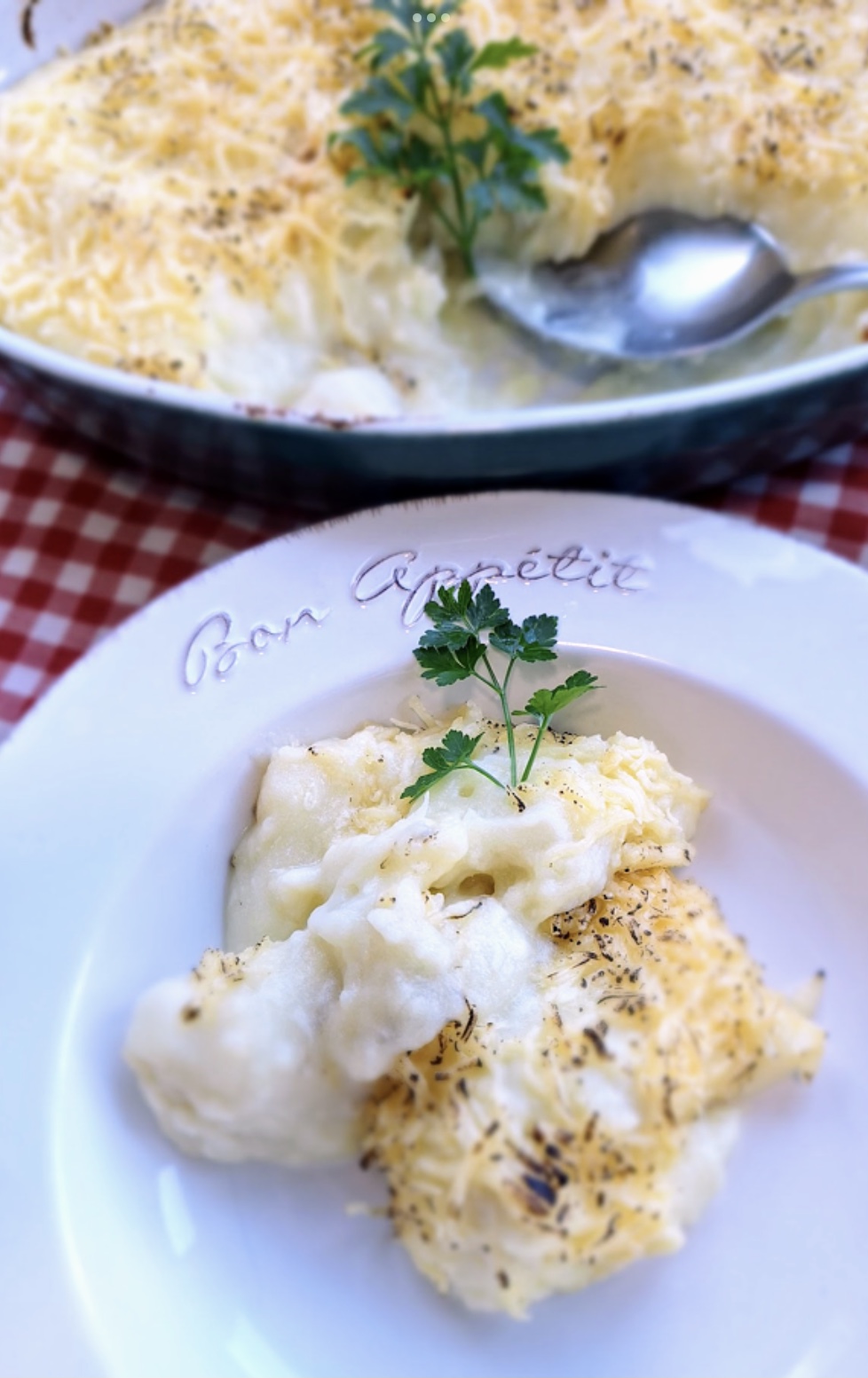 Un estupendo plato de coliflor gratinada al horno, con puré de patata y queso, muy fácil de preparar y con muy pocos ingredientes. ¡Éxito seguro!
