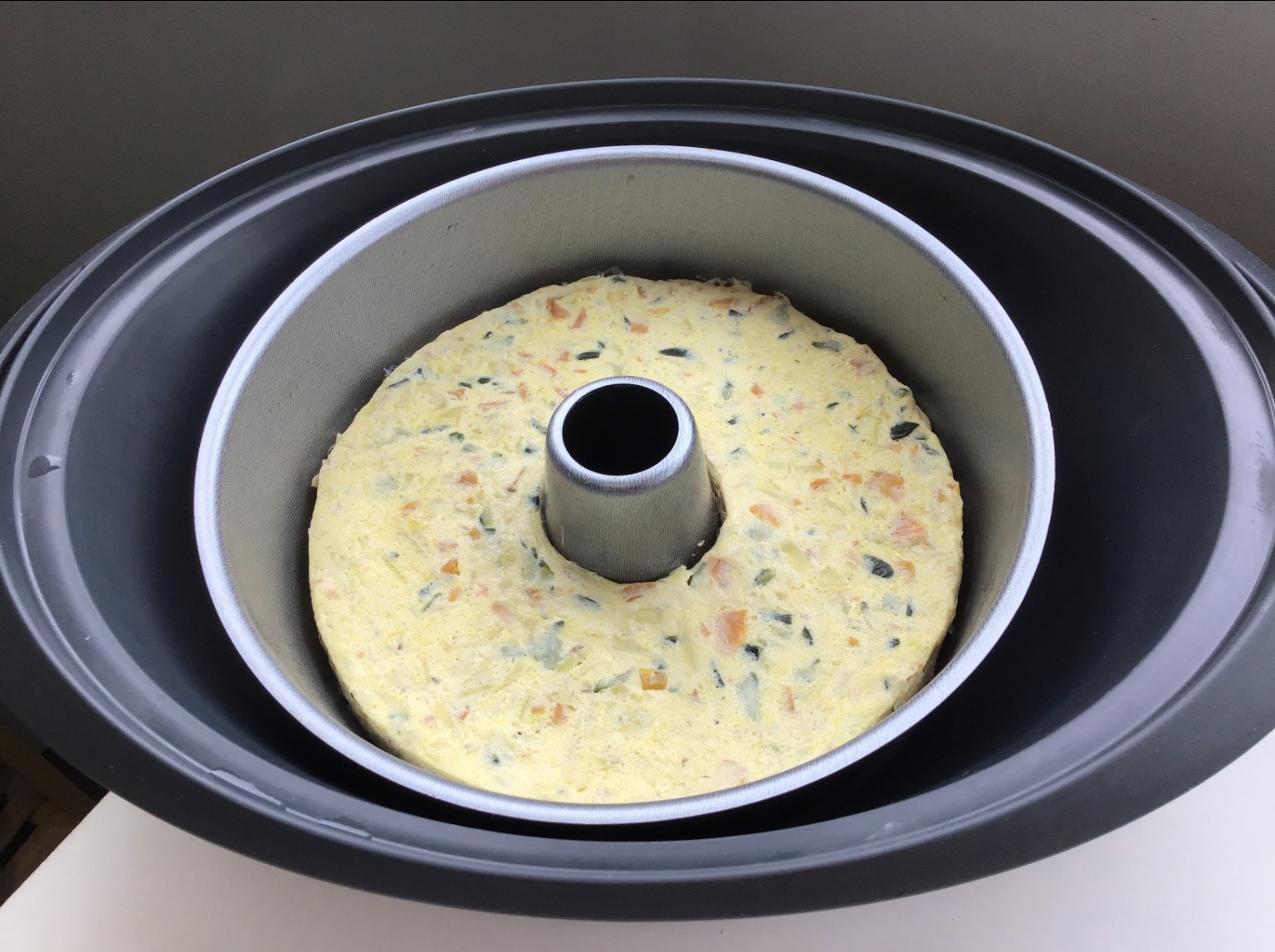 9.-Retire el Varoma y deje templar el pastel. Desmolde en una bandeja y sirva templado o frío. Puede servir acompañado de mayonesa.