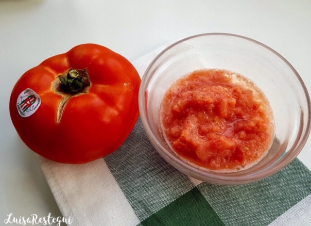 1.- lavar el tomate, partirlo en cuatro trozos y echarlo en el vaso.