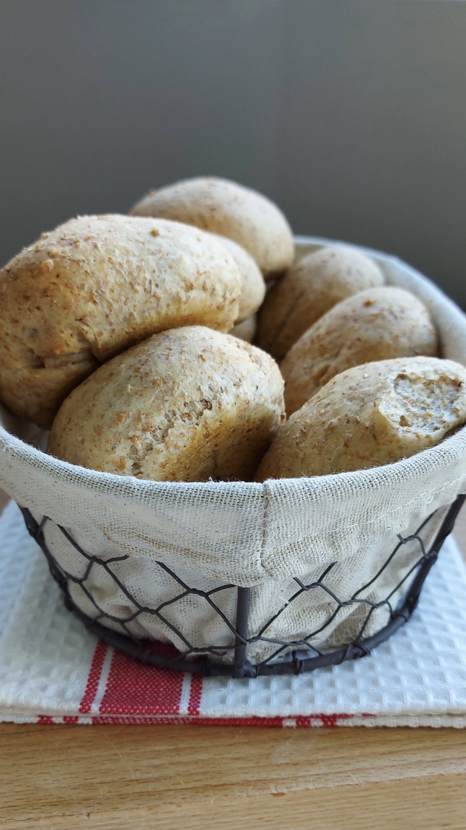 Con la nueva receta de pan rápido, vamos a hacer panecillos de pan integral. Verás que rápido y fácil. Solo añadimos los ingredientes en el vaso de Thermomix, primero lo mezcla y después lo masa. Una vez amasado, lo sacamos del vaso a un plato espolvoreado ligeramente con harina y le hacemos una bola con la masa. La dividimos en el número de panecillos y del tamaño que queramos, tapamos con una bayeta y lo dejamos levar unos 15 minutos antes de meter al horno.