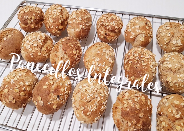 Una receta rápida y fácil de hacer. Panecillos integrales con nueces y muesli, solo echamos los ingredientes en el vaso, se mezclan y amasan en la velocidad espiga de Thermomix --es nuestra amasadora de pan--