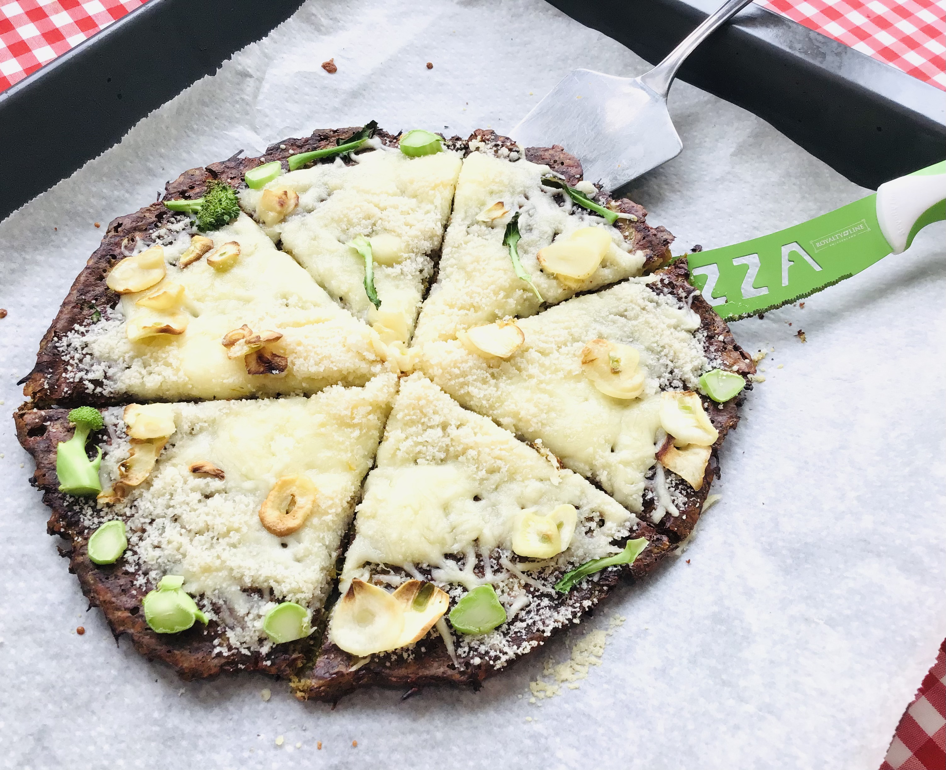 Pizza con masa de brócoli