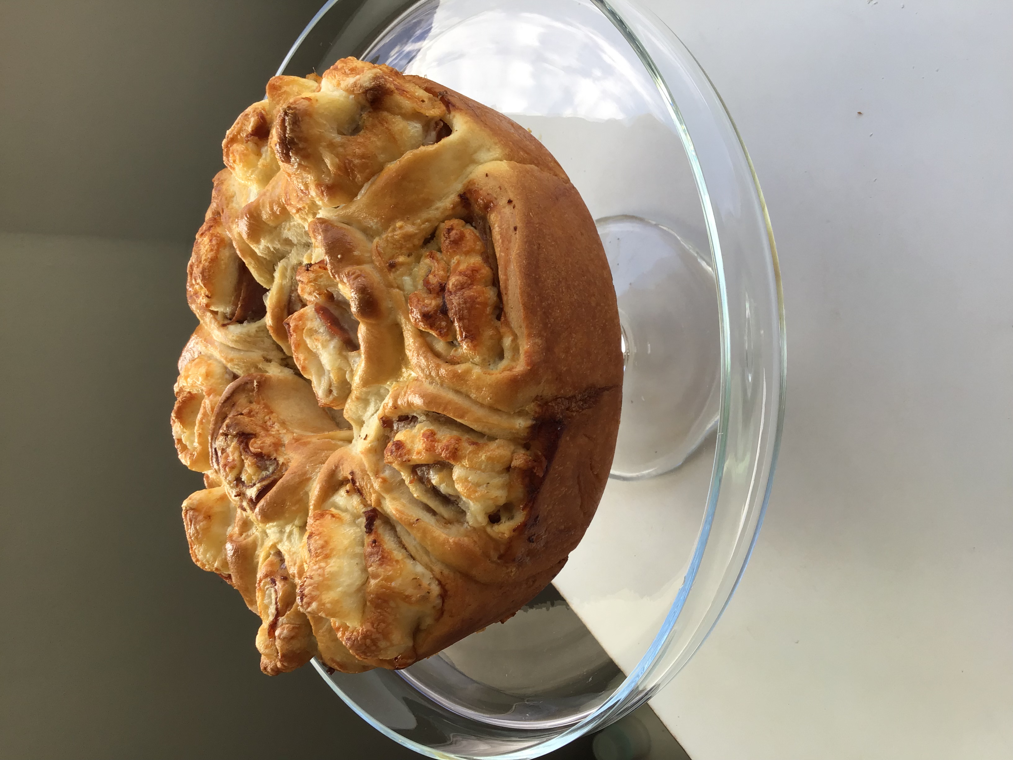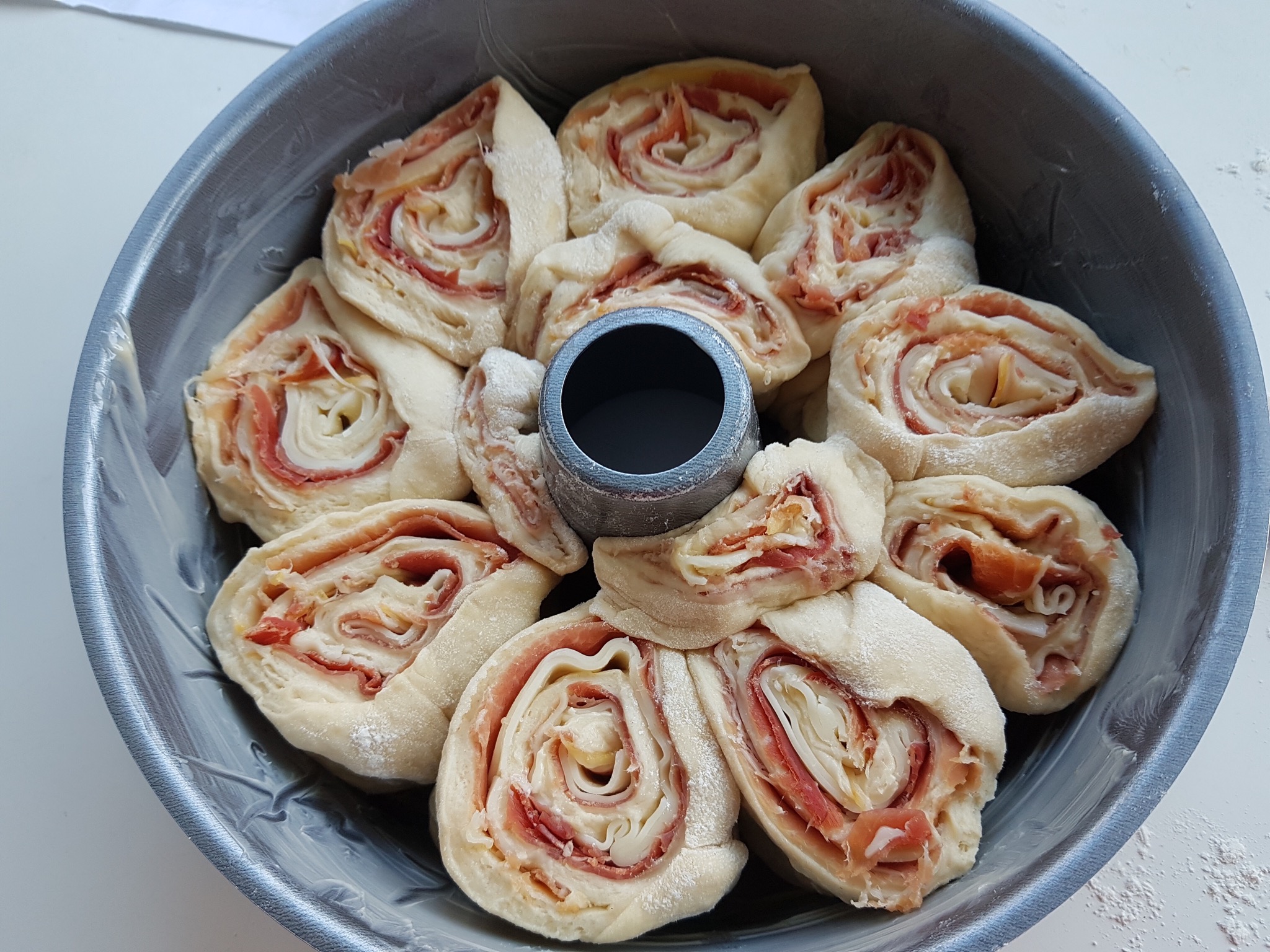 Se puede rellenar de otras cosas, ya que es una masa de pan. Con salsa pesto o un queso sabroso o sobreasada. También con dulce.