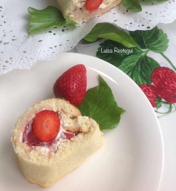Brazo de gitano de nata y fresas
