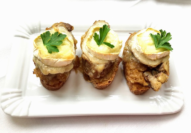 Foto: Pincho de cebolla caramelizada con rulo de queso de cabra al horno y solomillo. Espectacular.