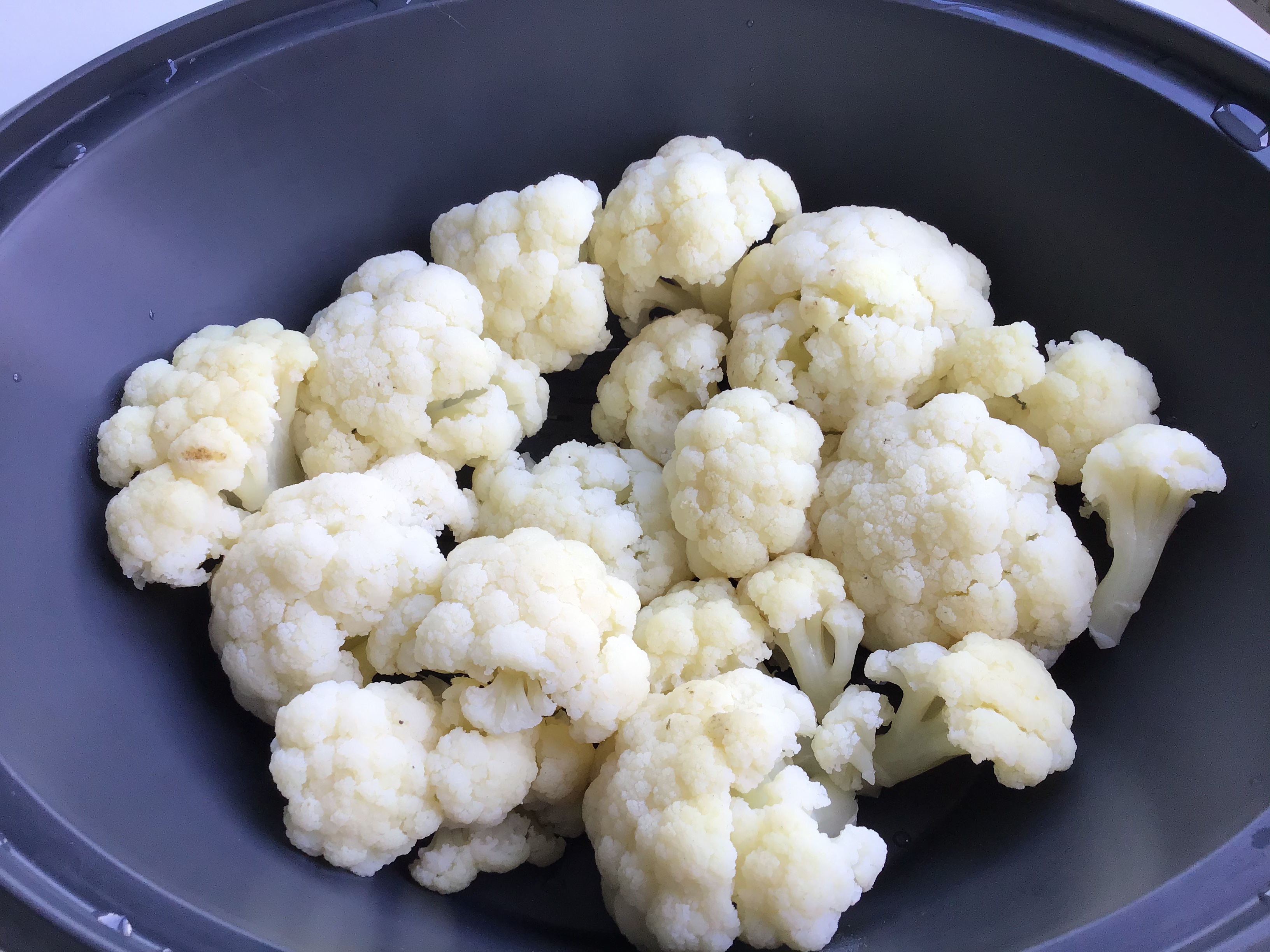 2.- Mientras, preparar la coliflor en ramilletes y colocar en el recipiente varoma y reservar.