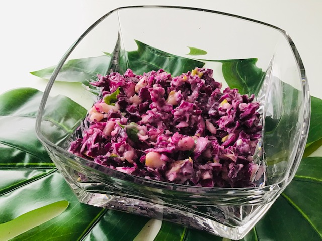 Una ensalada de lombarda y pera. Sana, fácil y muy rápida. La verdura cruda tiene más vitaminas.
