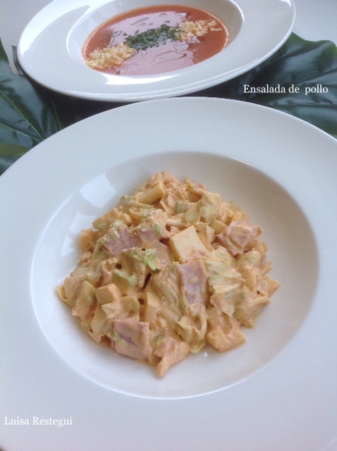 Ensalada de pollo, salsa rosa...