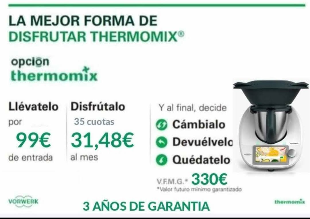 Sin Límites¡ esa es la mejor opción de tener un Thermomix en casa. Por solo 99€ de entrada y con una cuota de 1€ al día puedes disfrutar de la Thermomix. ¿hablamos?