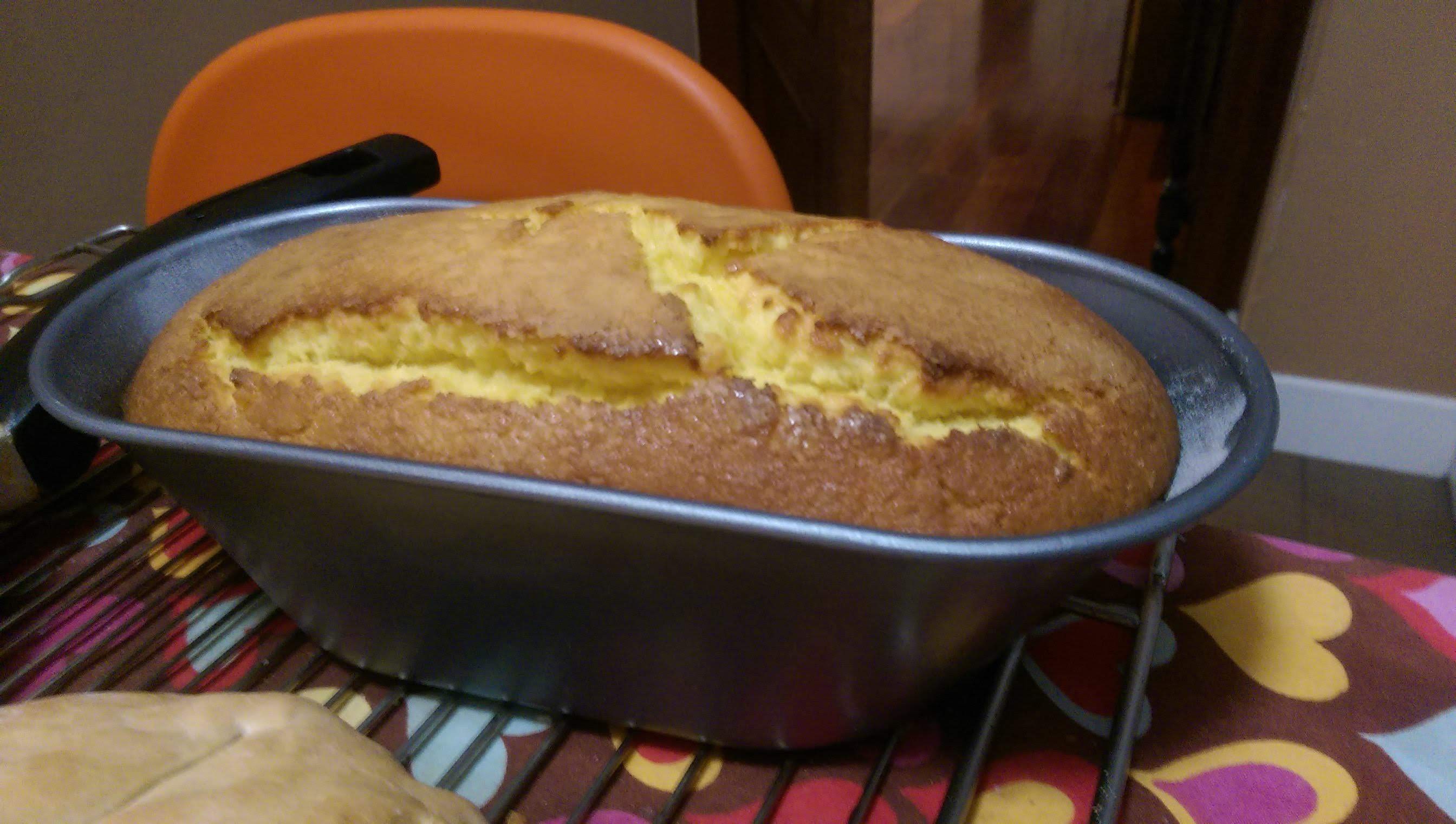 Vierte la mezcla en el molde y espolvorea la superficie con azúcar. Hornea durante 35-45 minutos aproximadamente (180ºC). Deja enfriar dentro del molde 10 minutos , desmolda y deja enfriar totalmente sobre una rejilla. Sirve una vez que esté totalmente frio.