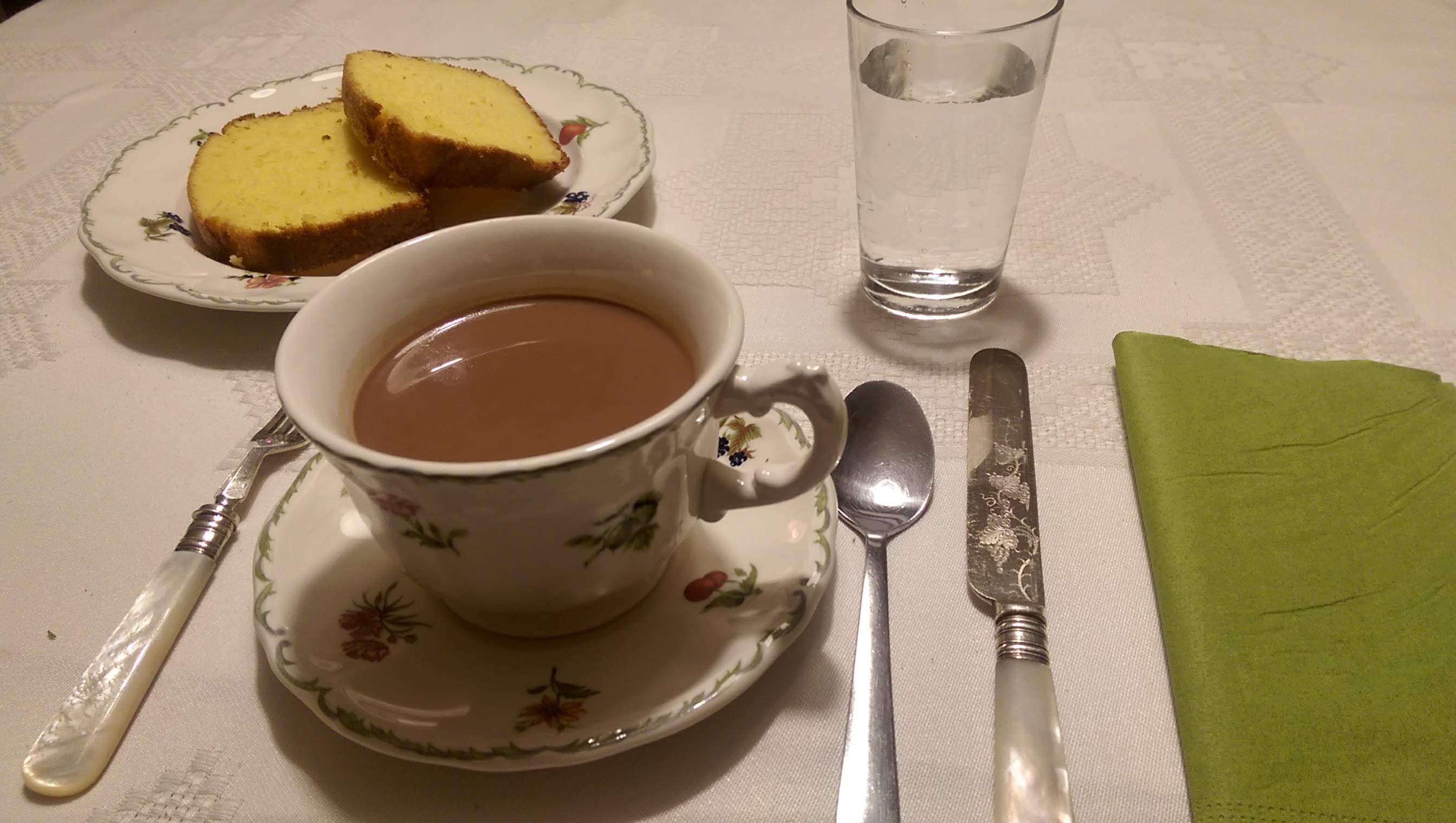 CHOCOLATE A LA TAZA Y BIZCOCHO DE NARANJA