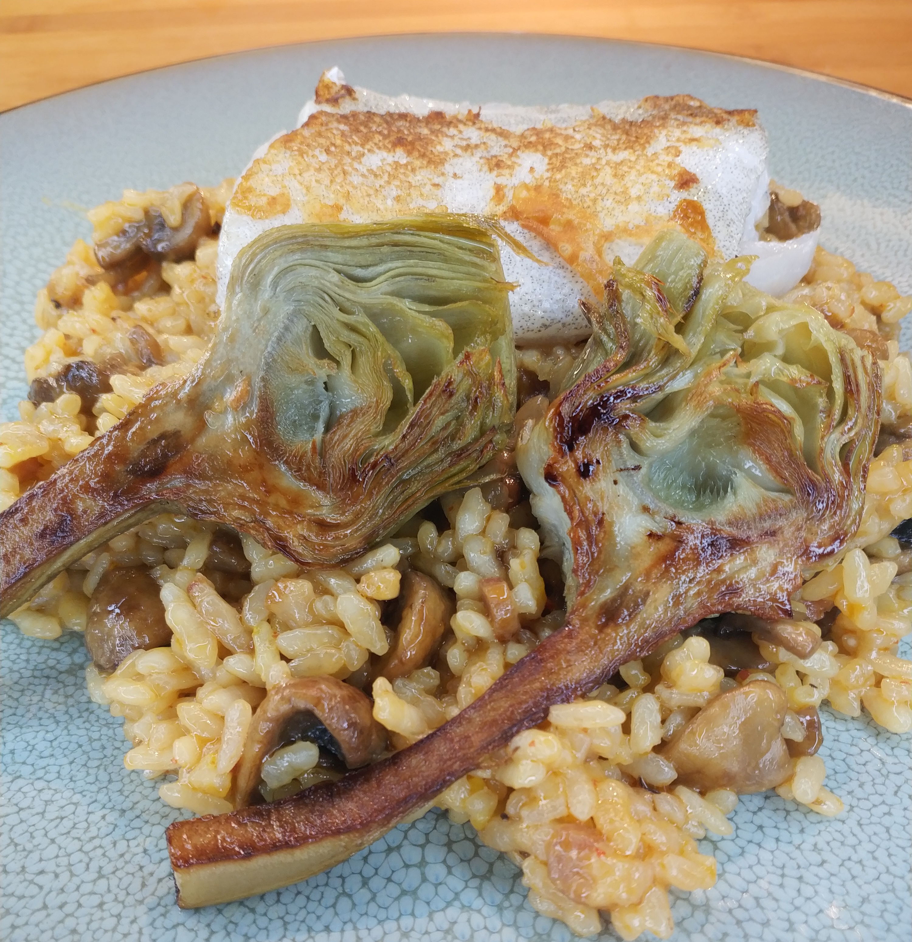 Arroz con alcachofas y bacalao a baja temperatura exclusiva tm6
