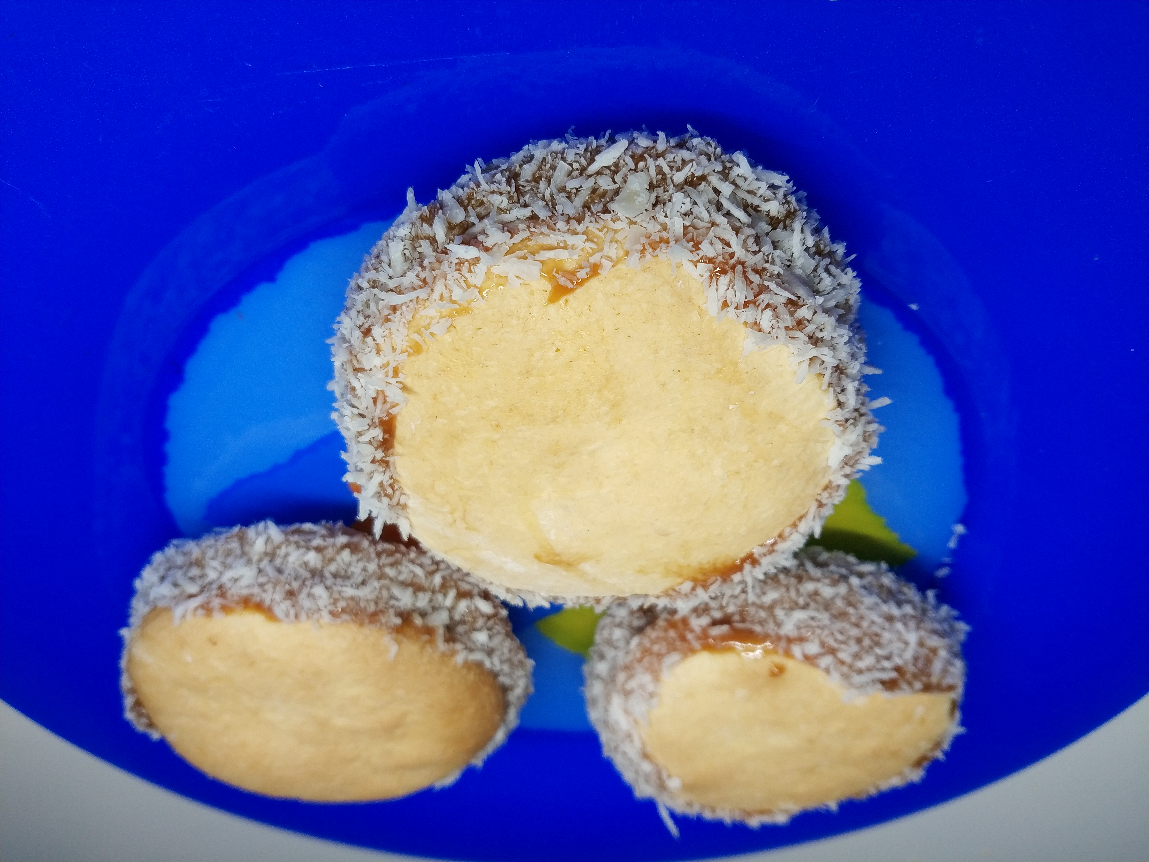 6. Dejar enfriar, juntar de dos en dos y rellenar con el dulce de leche, pasar por coco rallado y a comerlos.