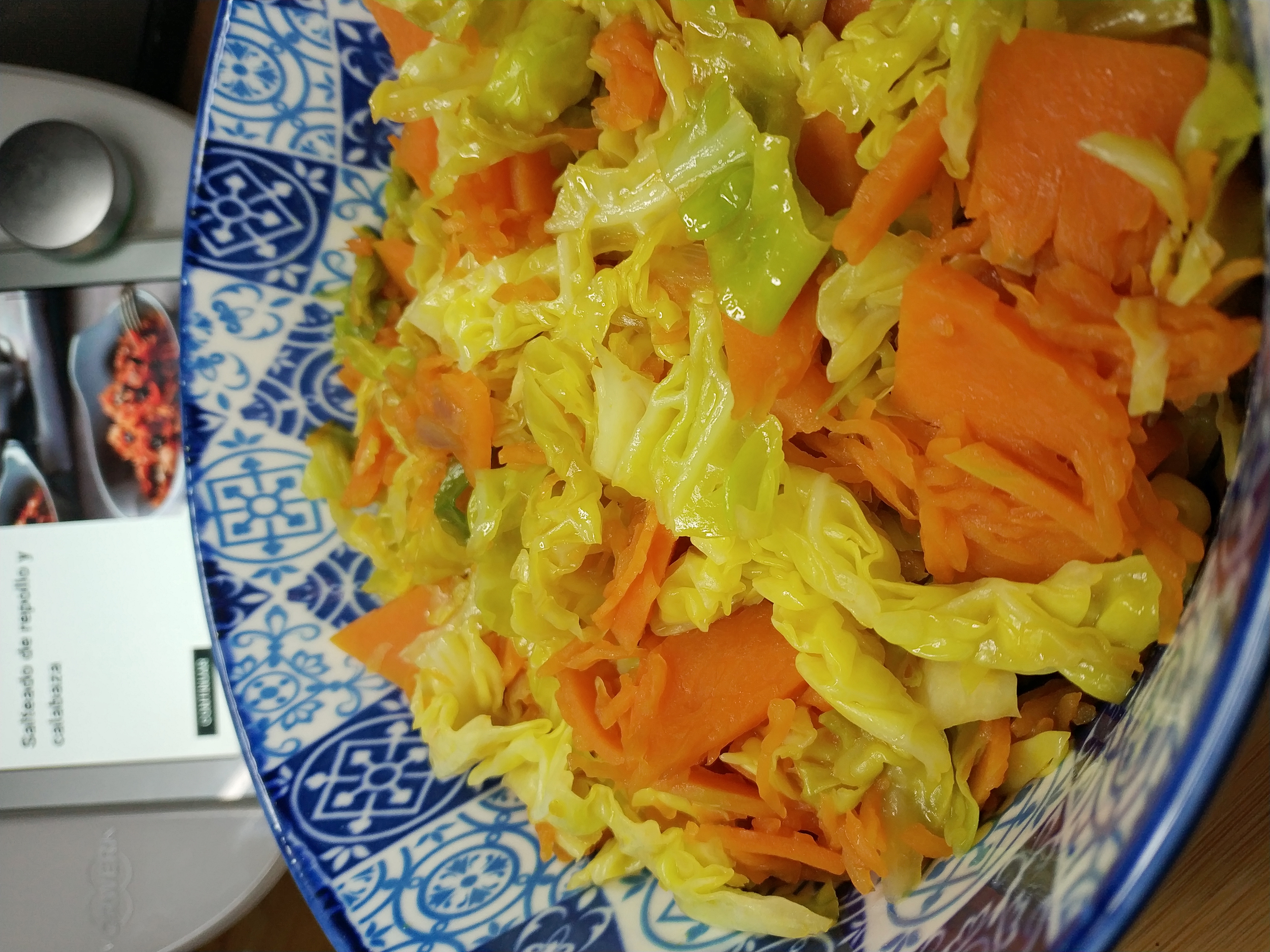 Empezamos el lunes con un plato de verdura, ¿os apetece repollo? Y si lo acompañamos con calabaza justo en su punto de maduración., le podemos añadir pipas de calabaza, semillas de Sésamo o incluso como nos dice la receta original de www.cookidoo.es Amaranto hinchado. Aunque yo para la foto no le añadí las semillas, ni las pipas, (cuando repita la receta le añadire).
